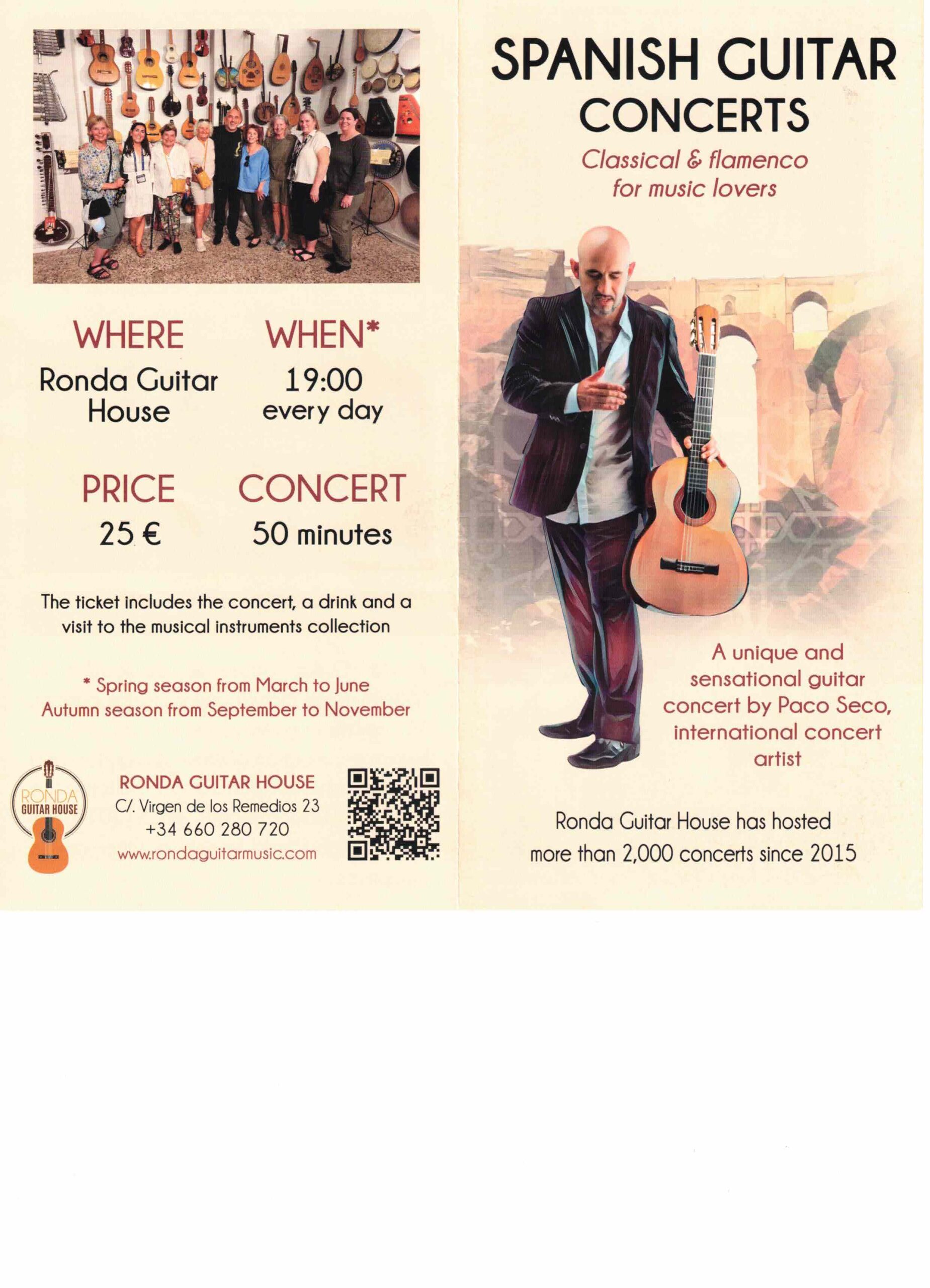 Precio: 25 €. Entradas a la venta en la Oficina Municipal de Turismo y en la entrada del concierto. Ronda Guitar House ( Calle Virgen de los Remedios nº 23)